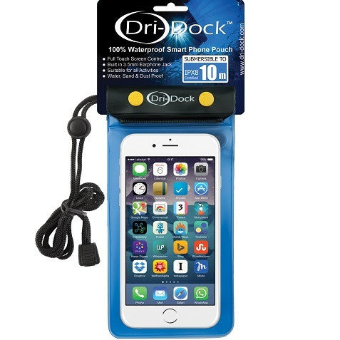 Orders over $100 ship FREE! Click for details.Dri-Dock waterproof phone pouches will keep your phone safe and sound out on the water, or even anywhere in the outdoors. Waterproof to 10m with a thick durable PVC construction is resistant against dirt and sand. The Dri-Dock case comes with a lanyard to help keep it attached, and features a built in 3.5mm jack adapter so you can combine your case with waterproof headphones to use while doing all sorts of activities such as snorking, kayaking, or even just in case of an unexpected downpour.